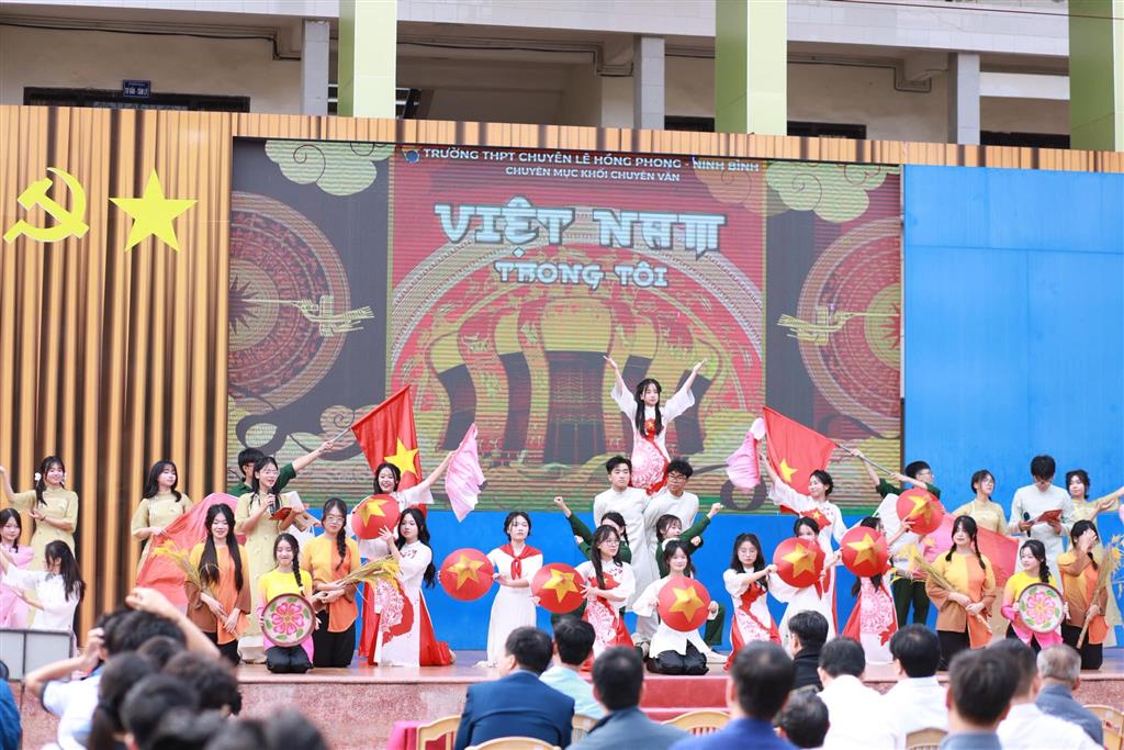 Không chỉ là nơi tôn vinh những thành tích học tập, buổi chào cờ còn là không gian để lan tỏa cảm xúc và sáng tạo nghệ thuật. Chuyên mục khối Chuyên Văn đã mang đến nhiều tiết mục đặc sắc, được chuẩn bị công phu và đầy cảm xúc, giúp lan tỏa thông điệp nhân văn, khơi dậy tình yêu văn chương, cuộc sống và con người trong mỗi học sinh.