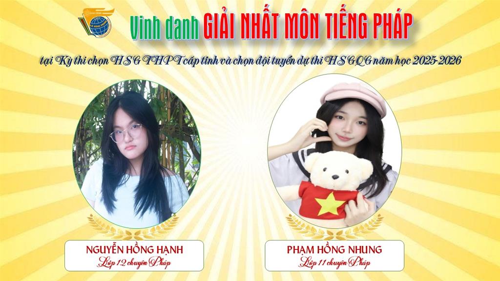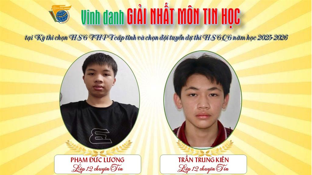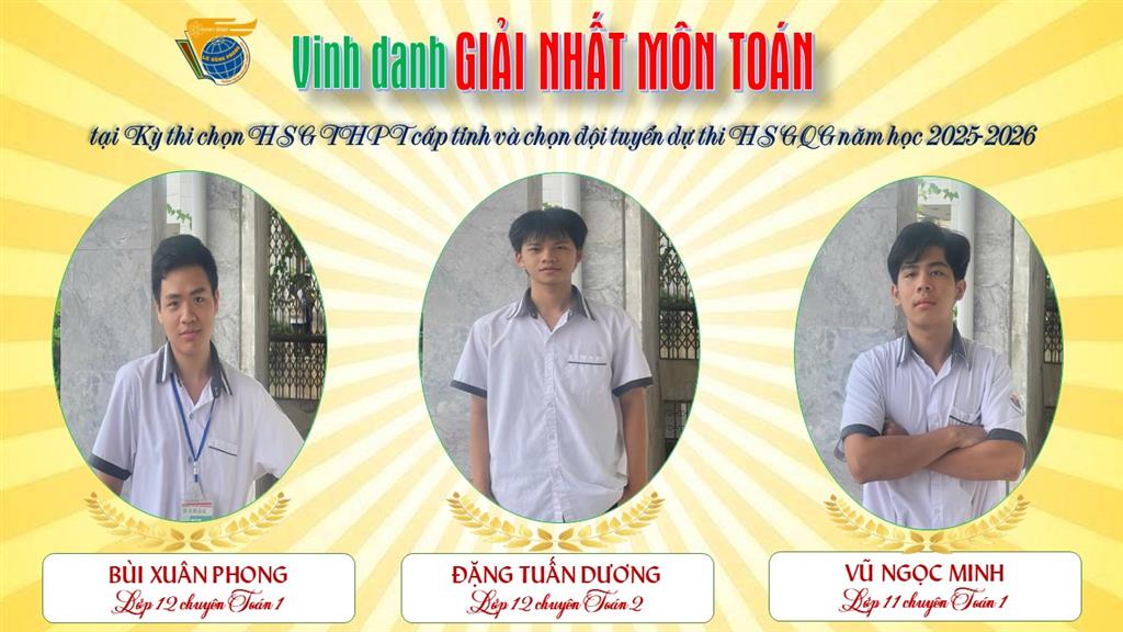 Xin gửi lời chúc mừng nồng nhiệt tới 36 học sinh đạt giải Nhất cùng toàn thể các em đã tham dự kỳ thi năm nay. Chúc các em tiếp tục nuôi dưỡng khát vọng, tự tin tỏa sáng ở những chặng đường tiếp theo, viết tiếp trang vàng thành tích làm rạng danh mái trường Lê Hồng Phong và quê hương yêu dấu!