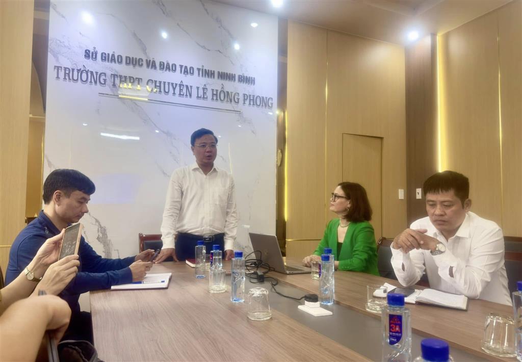28/10/2025Ngày 27/10/2025, tại Trường THPT Chuyên Lê Hồng Phong; cán bộ quản lý và các thầy cô giáo cốt cán của nhà trường đã có một buổi gặp gỡ thật đặc biệt cùng nhà báo Khổng Thị Thanh Loan (Cựu học sinh lớp Chuyên Anh khóa 1993–1996) hiện là chuyên gia huấn luyện phát ngôn và truyền thông với hơn 23 năm kinh nghiệm trong ngành báo chí – truyền thông tại Việt Nam.