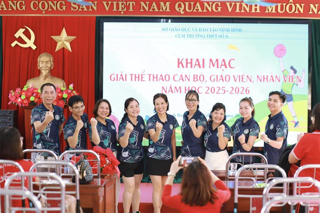 28/10/2025Sáng ngày 18/10/2025, tại trường THPT chuyên Lê Hồng Phong, Cụm Trường THPT số 6 – Sở Giáo dục và Đào tạo Ninh Bình long trọng tổ chức Lễ khai mạc Giải thể thao cán bộ, giáo viên, nhân viên năm học 2025–2026. Tham dự buổi lễ có đại diện lãnh đạo các trường trong cụm cùng đông đảo cán bộ, giáo viên, nhân viên của các đơn vị.