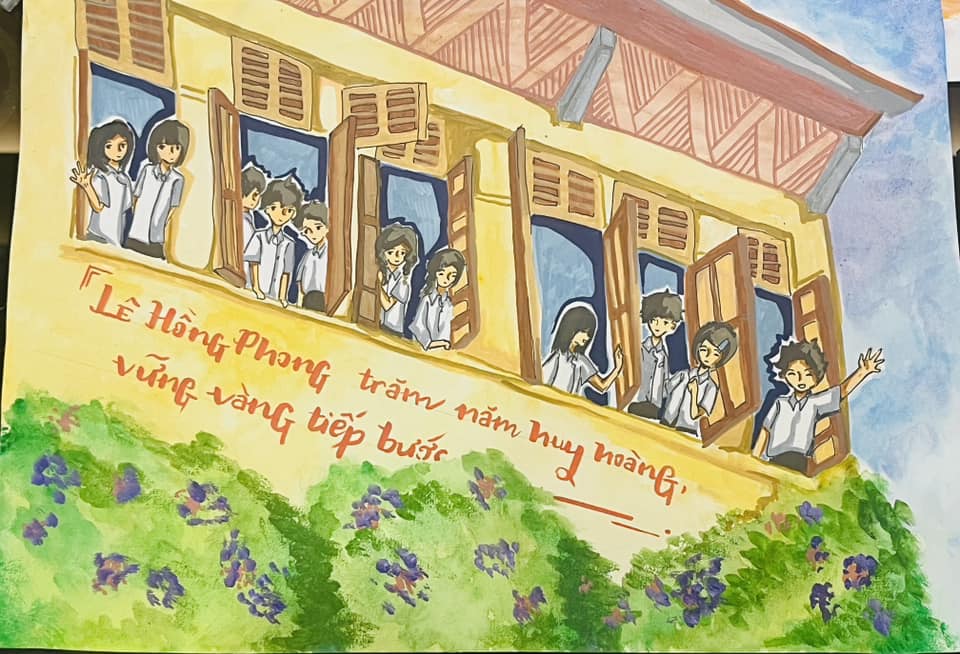 Mái trường Lê Hồng Phong trong nét vẽ học trò