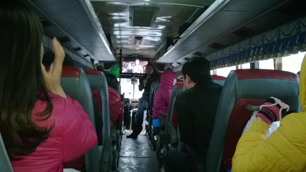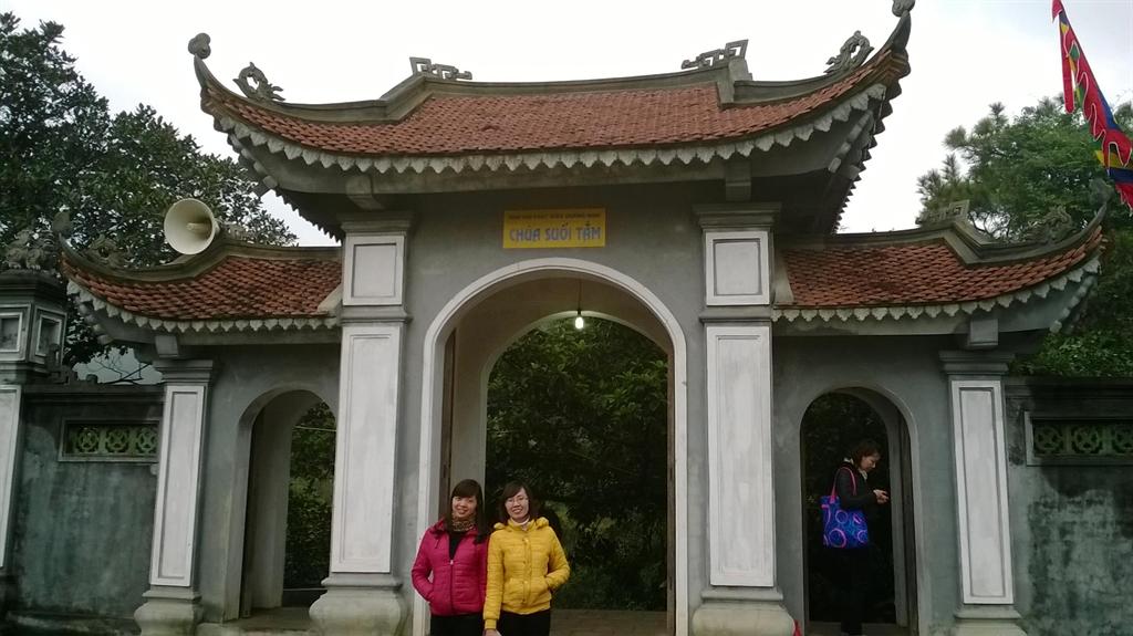 đi trên xe đoàn đã dừng chân tại chùa Suối Tắm (Đền Trình).