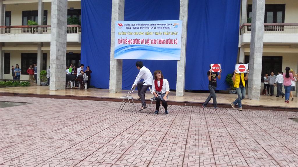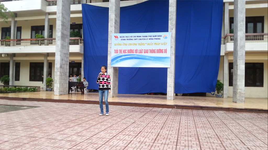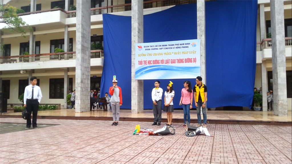 19/11/2014“Ngày pháp luật nước Cộng hòa Xã hội chủ nghĩa Việt Nam” hay gọi ngắn gọi là “Ngày pháp luật” vào ngày 09 tháng 11 hàng năm được quy định cụ thể trong Luật Phổ biến, giáo dục pháp luật Việt Nam. Đây là dịp để nâng cao ý thức chấp hành và bảo vệ pháp luật của mọi công dân. Thực hiện mục tiêu đó, vào sáng thứ 2, ngày 10/11/2014 Đoàn trường THPT chuyên Lê Hồng Phong đã tổ chức một chuyên mục đầu tuần với chủ đề “Tuổi trẻ học đường với luật giao thông đường bộ”.