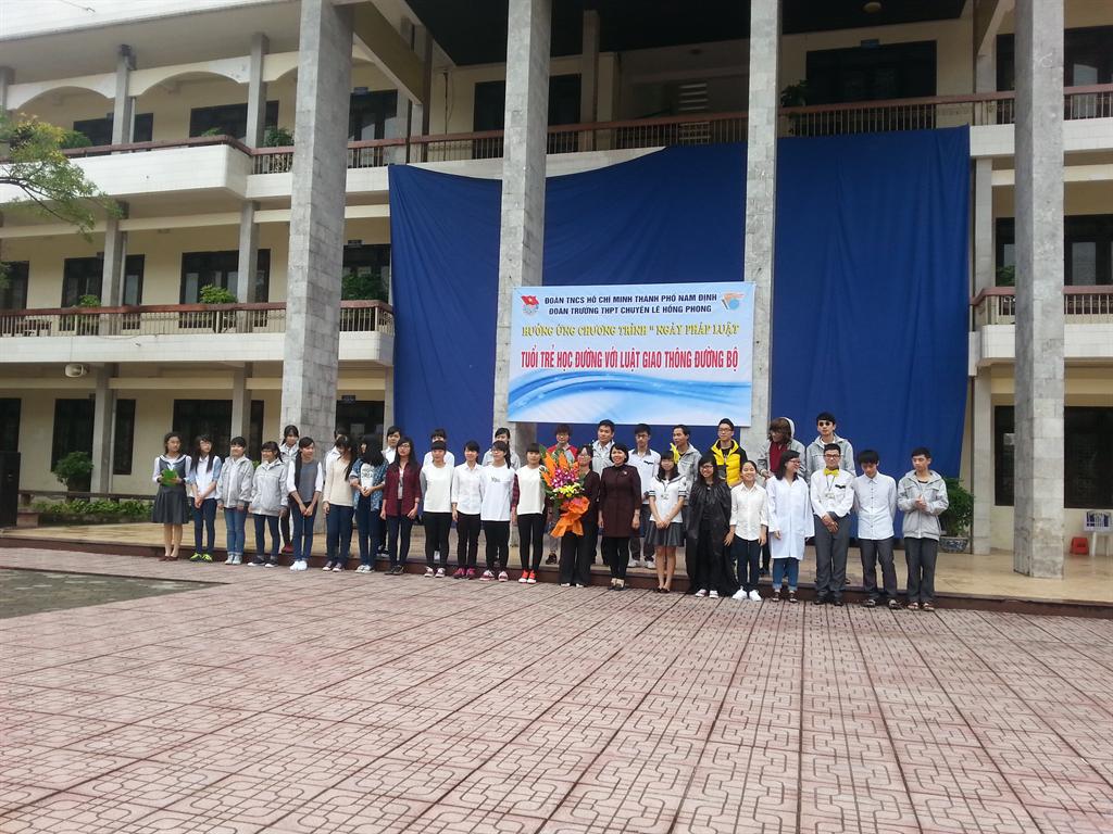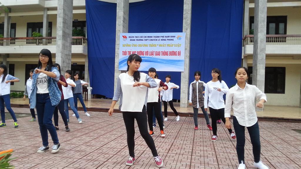 19/11/2014“Ngày pháp luật nước Cộng hòa Xã hội chủ nghĩa Việt Nam” hay gọi ngắn gọi là “Ngày pháp luật” vào ngày 09 tháng 11 hàng năm được quy định cụ thể trong Luật Phổ biến, giáo dục pháp luật Việt Nam. Đây là dịp để nâng cao ý thức chấp hành và bảo vệ pháp luật của mọi công dân. Thực hiện mục tiêu đó, vào sáng thứ 2, ngày 10/11/2014 Đoàn trường THPT chuyên Lê Hồng Phong đã tổ chức một chuyên mục đầu tuần với chủ đề “Tuổi trẻ học đường với luật giao thông đường bộ”.