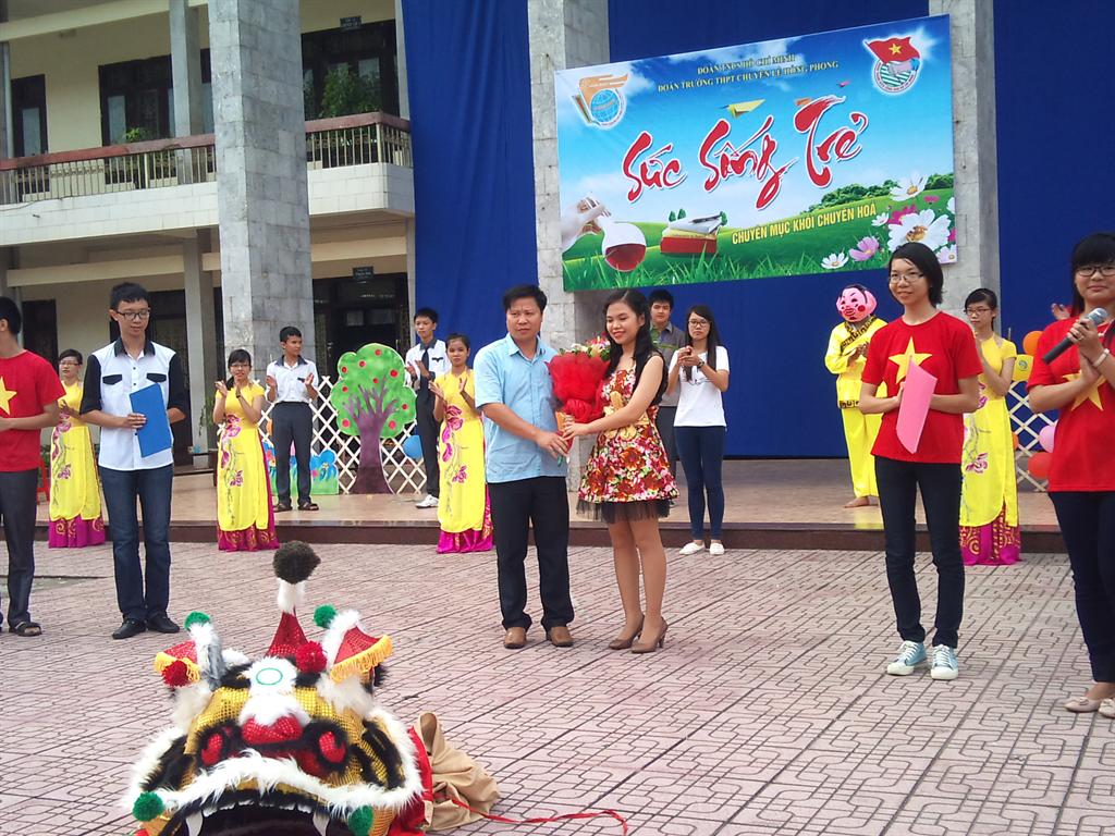 Thầy Hiệu trưởng Vũ Đức Thọ tặng hoa cho chuyên mục