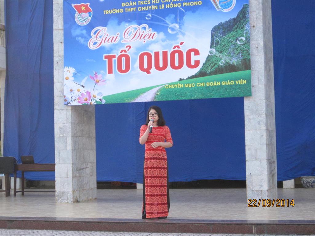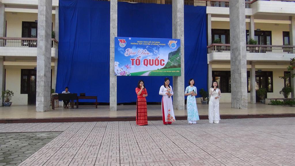 02/10/2014Trong tâm thế của những người trẻ tuổi, trẻ lòng, trong niềm tự hào về một dân tộc anh hùng bên bờ sóng, chi Đoàn giáo viên trường THPT chuyên Lê Hồng Phong gửi đến các thầy cô giáo, các bác cán bộ công nhân viên Nhà trường cùng toàn thể các em học sinh một chương trình văn nghệ đặc sắc với tên gọi: “Giai điệu Tổ quốc”.