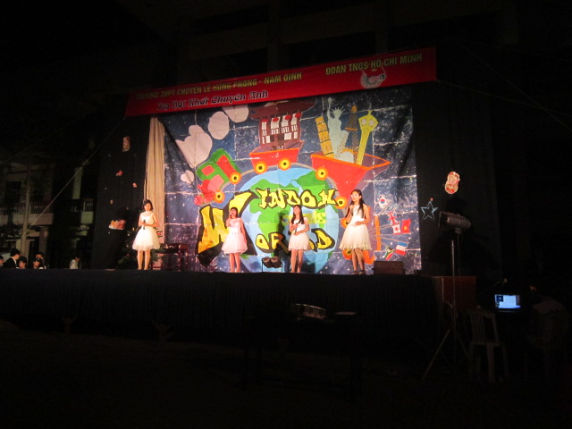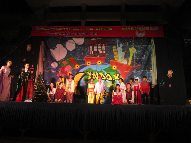 30/12/2014Được sự cho phép của Ban Giám hiệu nhà trường, nhờ có sự quan tâm của các bậc phụ huynh, và các thầy cô giáo nhóm tiếng Anh, tối ngày 23/11/2014, dạ hội khối chuyên Anh đã diễn ra thành công rực rỡ, để lại ấn tượng sâu sắc với mục đích cổ vũ, khích lệ không khí học tập tiếng Anh cho toàn thể học sinh, cũng như tạo dựng các mối quan hệ bạn bè thân thiện, trong sáng trong môi trường học đường, tăng cường sự giao lưu giữa thầy và trò.
