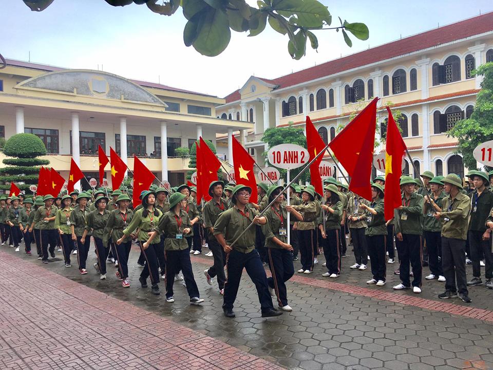 gia kì huấn luyện quân sự đầu năm này, các em học sinh được bồi dưỡng những kiến thức về quân đội nhân dân Việt