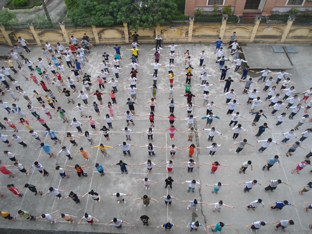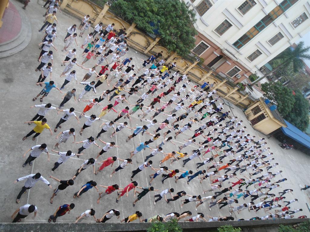 Học sinh nội trú tập thể dục buổi