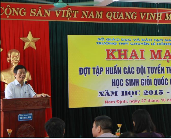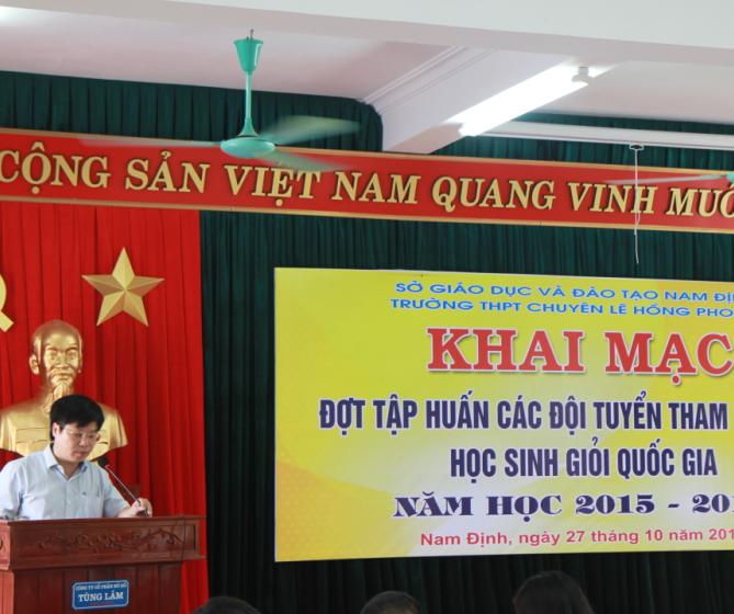 01/11/2015Ngày 27/10/2015, trường THPT chuyên Lê Hồng Phong tổ chức khai mạc đợt tập huấn các đội tuyển tham dự kì thi chọn HSG quốc gia năm học 2015 – 2016. Đến dự buổi khai mạc có đồng chí Ngô Vĩ Nông - Phó Giám đốc Sở Giáo dục và Đào tạo cùng các đồng chí lãnh đạo các phòng ban của Sở Giáo dục và Đào tạo Nam Định.