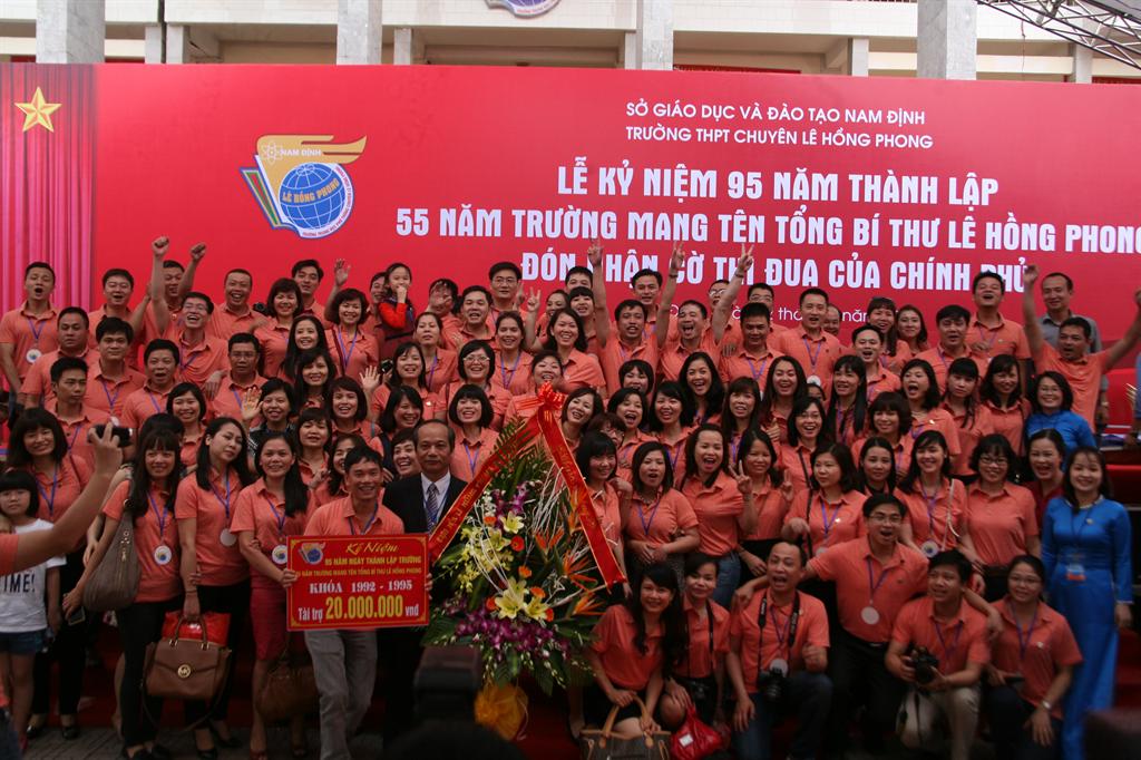 17/04/2015Trong 2 ngày 21,22/3/2015, trong không khí ấm áp, sum vầy, tràn ngập hương sắc của một mùa xuân mới, thầy trò trường THPT chuyên Lê Hồng Phong Nam Định đã long trọng tổ chức Lễ kỉ niệm 95 năm thành lập trường, 55 năm trường mang tên Tổng Bí thư Lê Hồng Phong.
