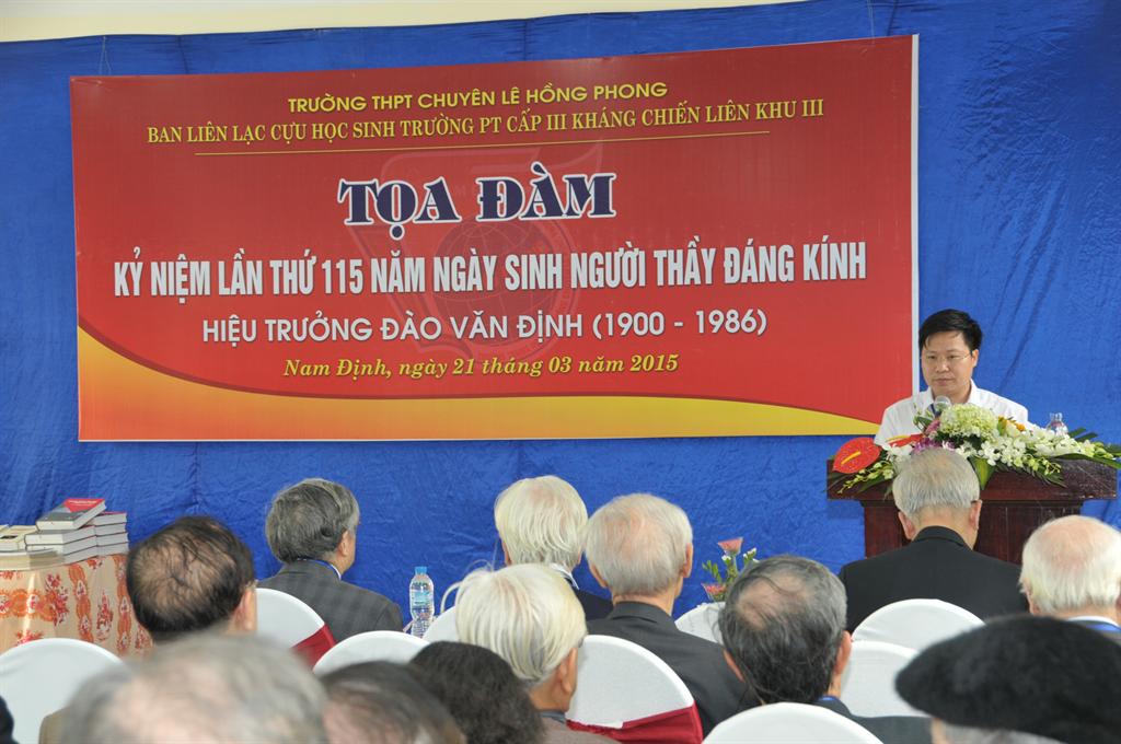 buổi tọa đàm về thầy Đào Văn Định - Hiệu trưởng đầu tiên của trường. Đồng thời,