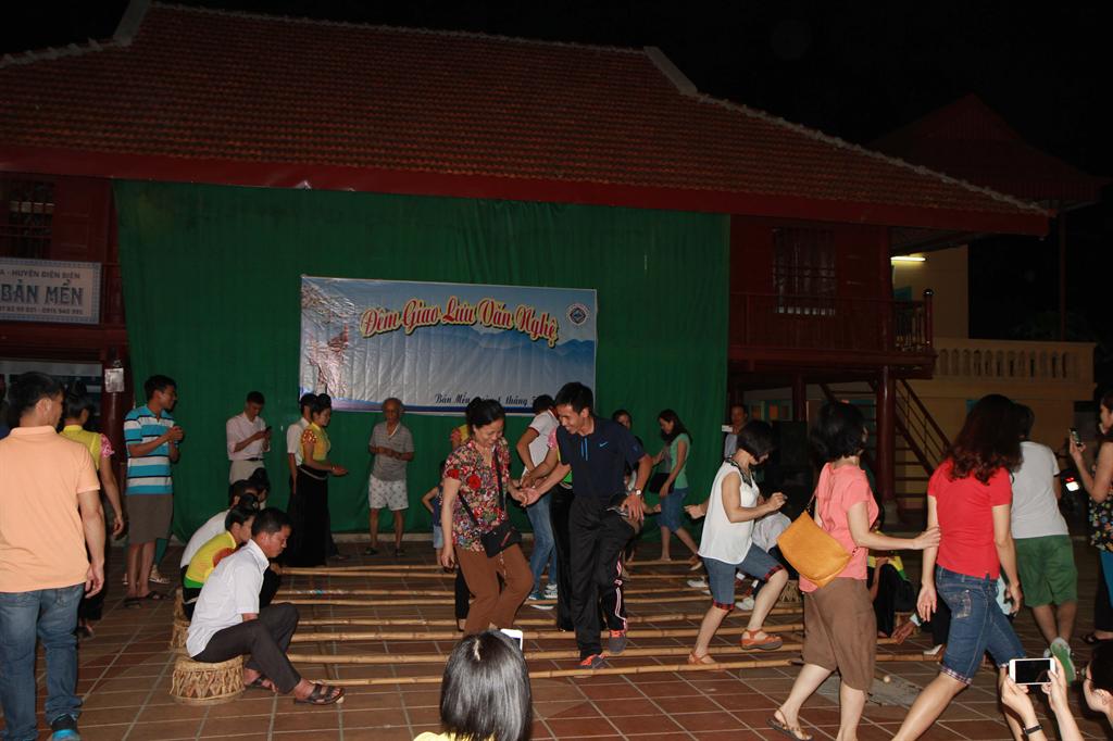 Nhắc tới Tây Bắc, nhắc tới Điện Biên không thể không nhắc tới những điệu múa sạp của đồng bào dân tộc Thái. Buổi tối hôm đó ở Điện Biên chúng tôi đã được tới bản Mển, một trong những bản người Thái để thưởng thức những món ăn truyền thống, được cùng các cô gái Thái múa sạp rất vui vẻ. Những người dân nơi đây rất thân thiện hiếu khách. Khi chương trình giao lưu văn nghệ kết thúc, chúng tôi cùng những người dân trong bản mặc dù không quen biết nhau nhưng không ai bảo ai cùng nắm tay kết thành vòng tròn và hát vang bài hát “nối vòng tay lớn”.