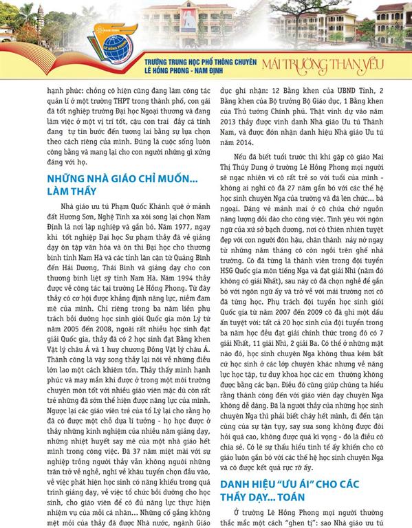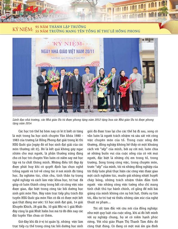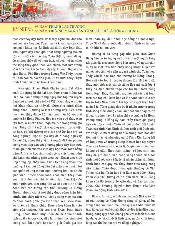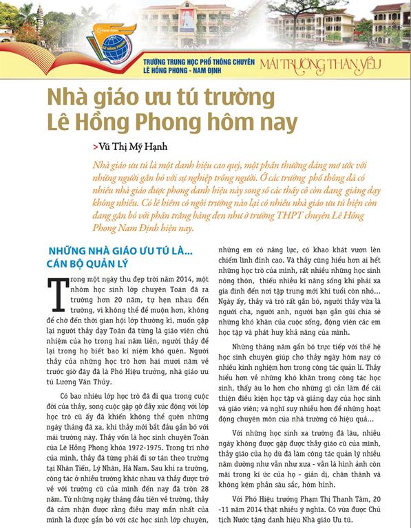07/05/2015Bài viết trích trong kỷ yếu "Mái trường thân yêu" kỷ niệm 95 năm thành lập trường, 55 năm trường mang tên Tổng bí thư Lê Hồng Phong