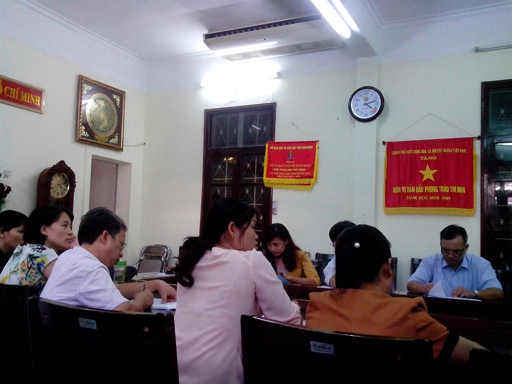 24/09/2015Chiều ngày 22.9, Hội đồng nhà trường bao gồm Ban Giám hiệu, Bí thư Đoàn thanh niên, tổ trưởng, nhóm trưởng chuyên môn đã họp để thông qua sản phẩm của các nhóm giáo viên được chọn vào vòng chung khảo cuộc thi "Giáo viên sáng tạo trên nền tảng CNTT 2015" do tập đoàn Microsof phối hợp với Bộ GD&ĐT tổ chức.