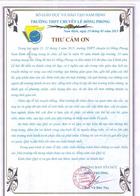 - Trường THPT chuyên Lê Hồng Phong tổ chức Lễ tổng kết năm học; Tri ân và trưởng thành của học sinh lớp 12