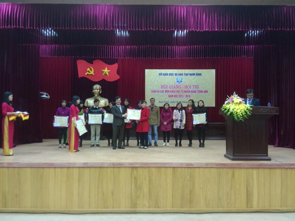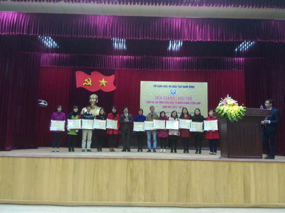 28/01/2016Từ ngày 20/01 đến 22/01/2016, Hội giảng và Hội thi Toán và các môn KHTN bằng tiếng Anh do Sở Giáo dục và Đào tạo Nam Định tổ chức đã diễn ra tại trường THPT Trần Hưng Đạo. Trường THPT chuyên Lê Hồng Phong có 03 thầy cô tham gia Hội thảo và Hội giảng: thầy Lại Năng Duy (báo cáo sáng kiến kinh nghiệm tại Hội thảo), cô Phan Thị Hải (Hội giảng môn Toán), cô Trần Thị Ánh Diệp (Hội giảng môn Sinh học). Đội tuyển học sinh của trường có 04 em tham gia Hội thi Toán và các môn KHTN bằng tiếng Anh: Lê Thu Hằng (11 Toán 2), Nguyễn Mạnh Hùng (11 Hóa), Bùi Thị Tuyết Chinh (11 Toán 1), Phùng Huy Hoàng (11 Lý).