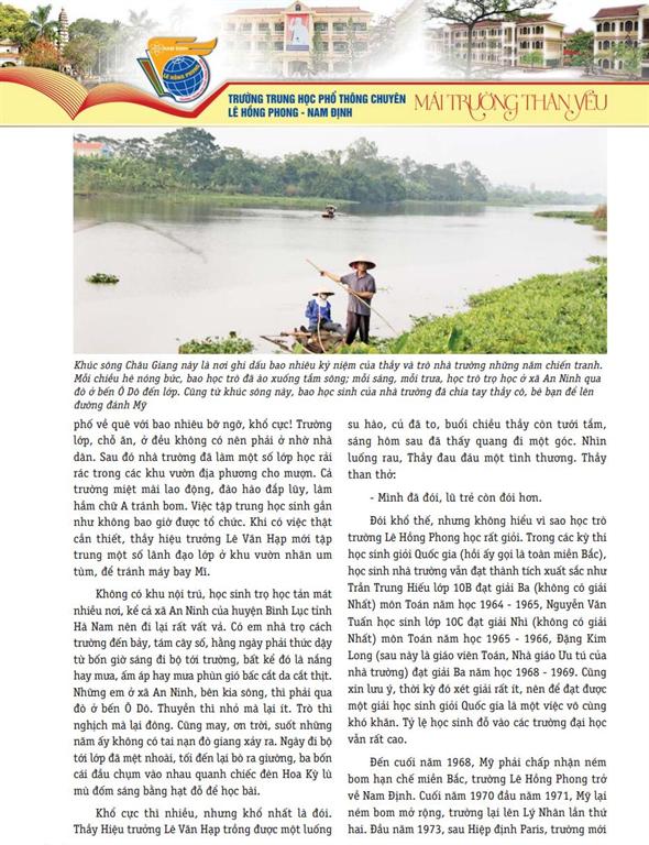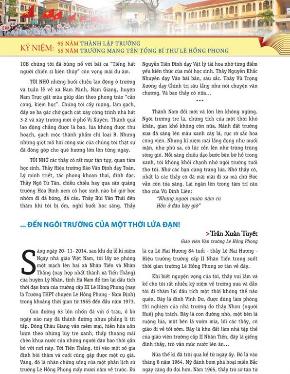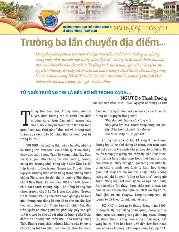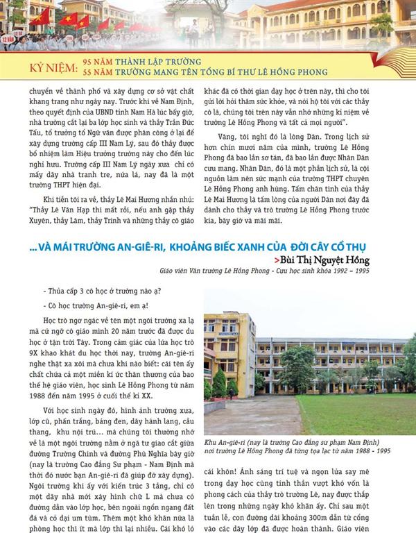 15/04/2015Bài trích trong kỷ yếu "Mái trường thân yêu" kỷ niệm 95 năm thành lập trường, 55 năm trường mang tên Tổng bí thư Lê Hồng Phong